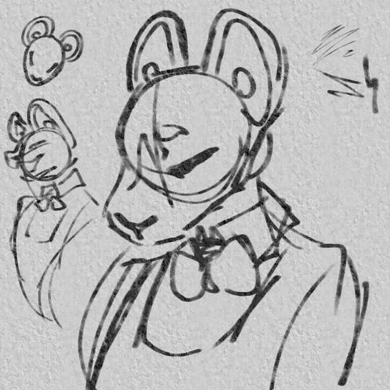 found some papers of sketches of an "scratched" character(!!)